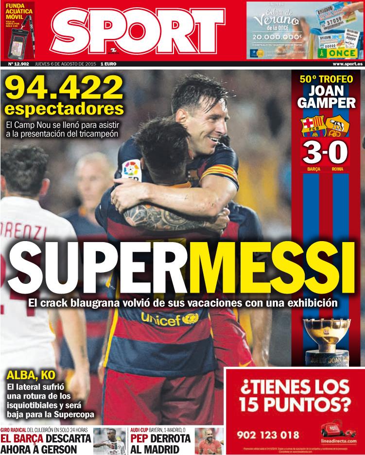 Mal augurio: el diario Sport ya anunció que Barcelona será ... from bolavip.comBreaking news & live sports coverage including results, video, audio and analysis on football, f1, cricket, rugby union, rugby league, golf, tennis and all the main world sports, plus major events.